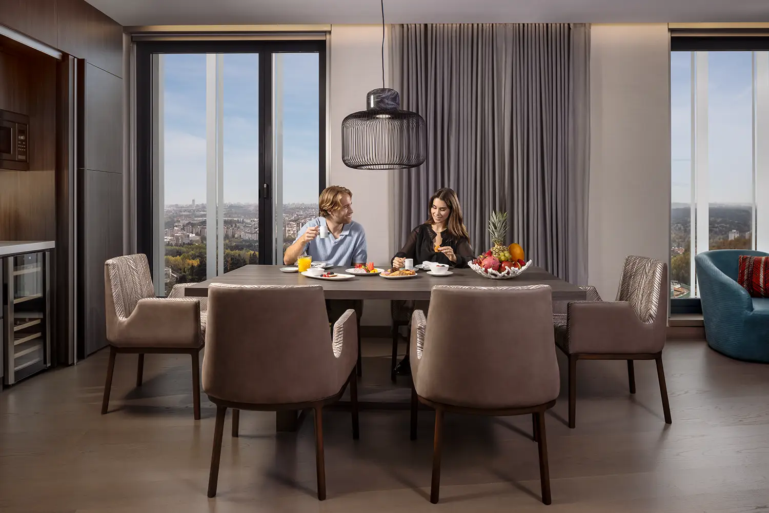 La sesión se planteó con tres parejas, combinando interiores y exteriores, y con una luz en clave baja para crear atmósfera sin restar protagonismo a los espacios. La idea era sumar presencia humana y experiencia, más allá de la imagen descriptiva.